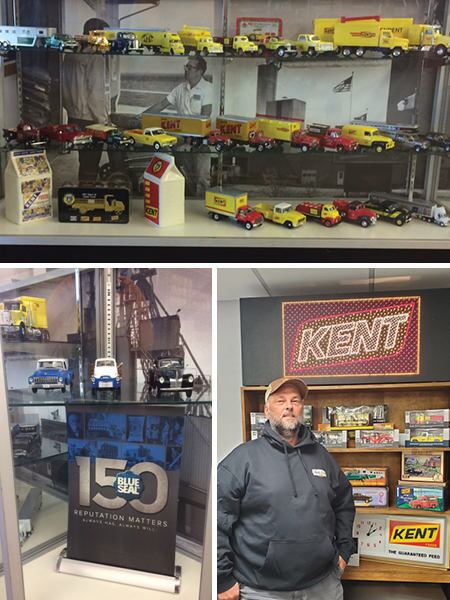 Today Warnstaff helps coordinate the shipping and fulfillment department for both Kent and Blue Seal feeds, and he still gets calls from longtime customers asking if he has any of those old Kent Feed signs (He doesn’t.) His job now involves supporting the marketing and sales teams by inventorying and distributing printed brochures, novelty giveaways, product promotions and launch packets, dealer awards and any other items that need to be shipped to various territories.