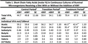 Lastly, the inclusion of KNY in the diet tended to inhibit the decline in ruminal pH often associated with diet transition
