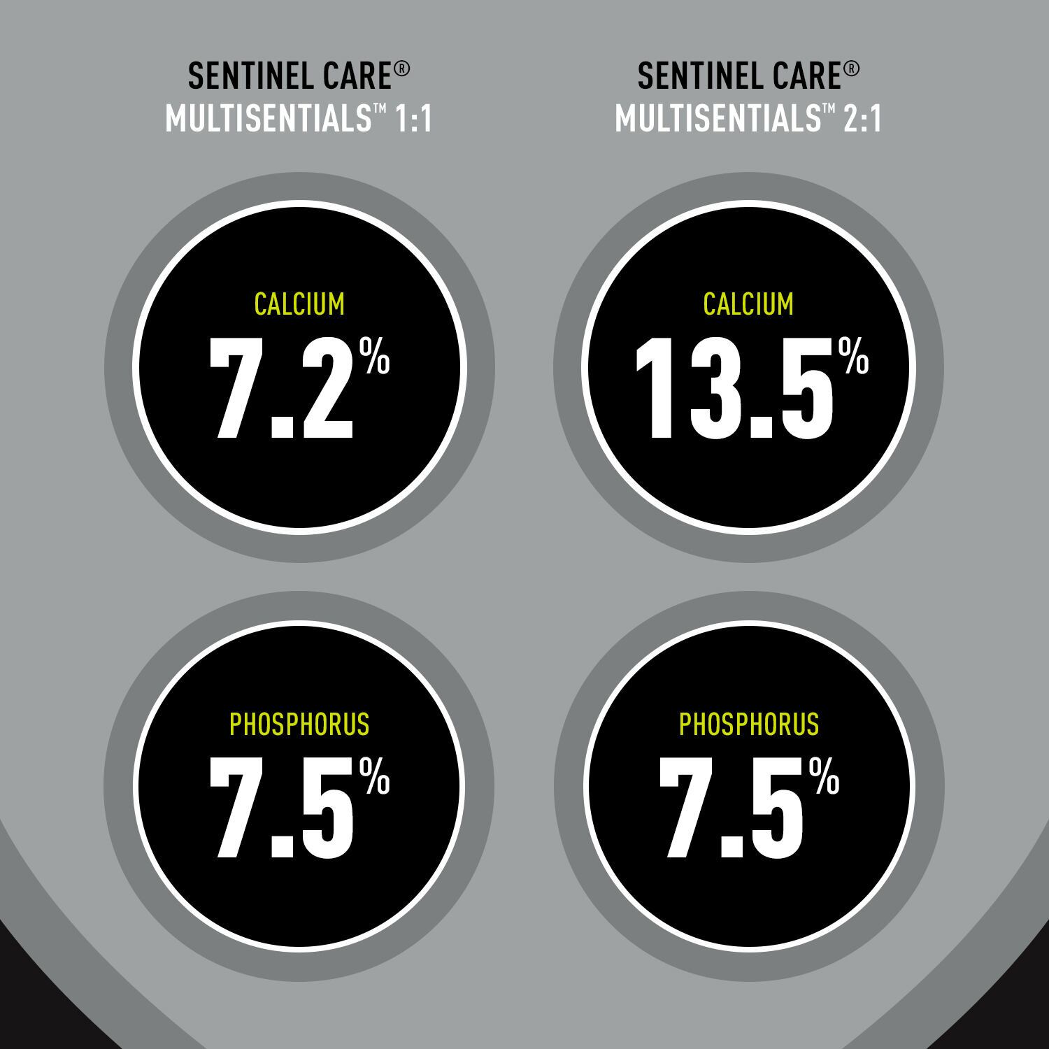 - Balanced Calcium:Phosphorus Ratio Choices - MultiSentials™ vitamin and mineral supplements will help provide the proper balance of calcium and phosphorus to support bone and tissue development, strength and health.