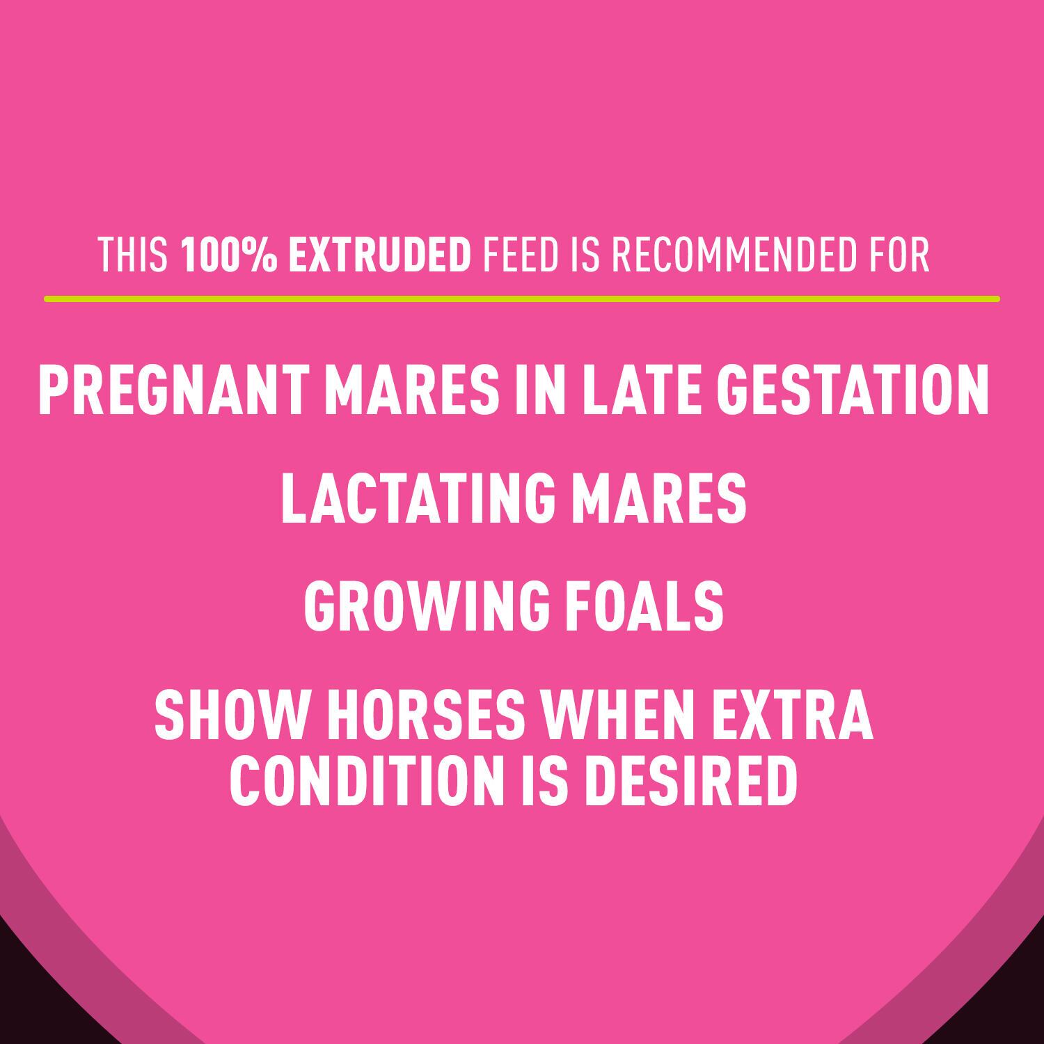 Easily digestible extruded horse feed for foal growth.