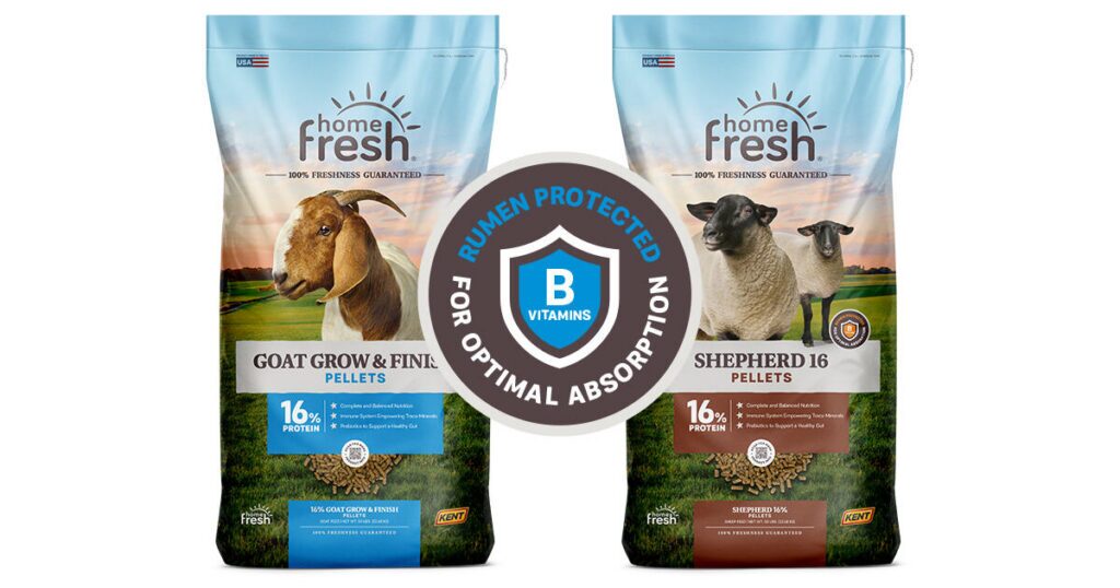 Home Fresh goat and sheep formulas include consistent levels of rumen-protected B-vitamins to help stabilize nutrient availability across all stages of production. By maintaining adequate levels of B-vitamins, these feeds support: