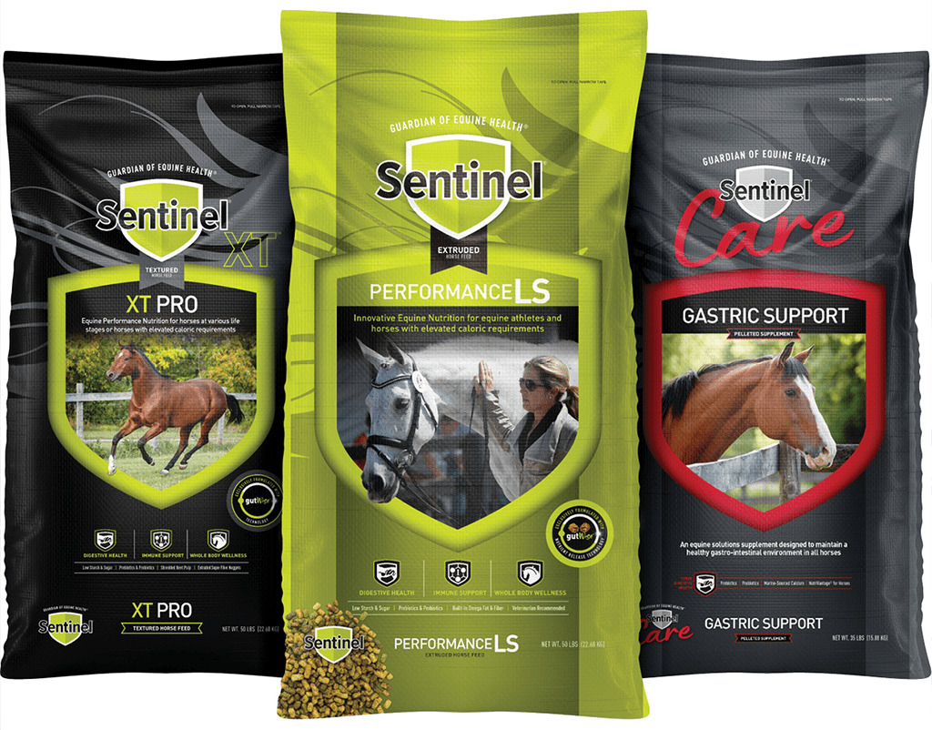 The Sentinel XT™ feed line contains more high-fat formulas blended with super-fiber extruded nuggets to help support nutrient utilization. Sentinel XT Pro and XT Show are textured horse feed formulas that combine high levels of fat and fiber with lower levels of sugar and starch to deliver optimum nutrition without overfeeding.
